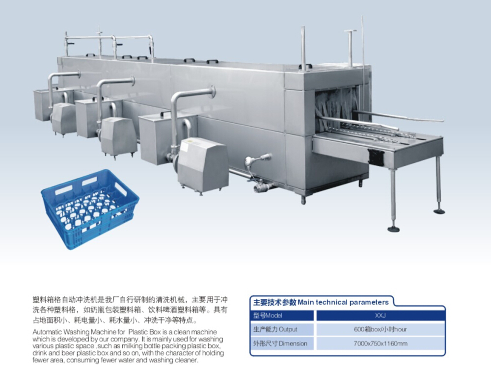 塑料箱格自動沖洗機(jī)是我廠自行研制的清洗機(jī)械,主要用于沖洗各種塑料格,如奶瓶包裝塑料箱、飲料啤酒塑料箱等。具有占地面積小、耗電量小、耗水量小、沖洗干凈等特點(diǎn)。
